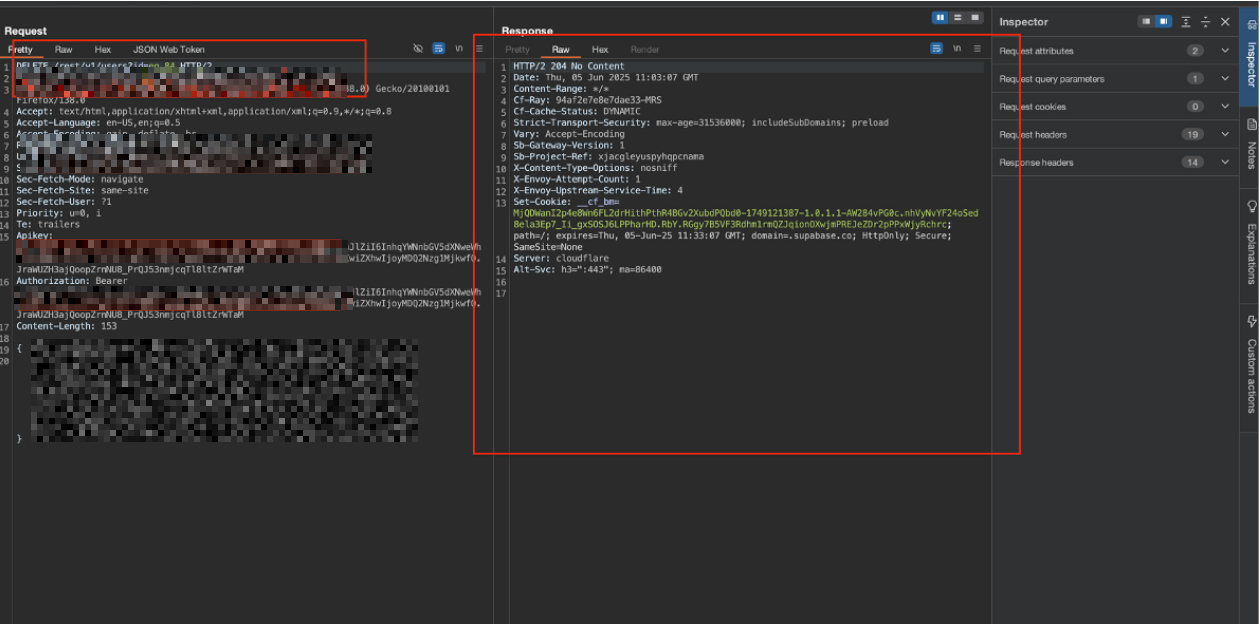This research showed that the exposed URL and key allow direct access to the database through Supabase’s auto-generated REST API. Using this API, it is possible to interact with database tables by calling endpoints that follow common naming patterns, such as: