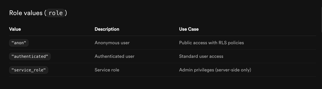 Supabase heavily relies on JSON Web Tokens (JWTs) for secure authentication and authorization. Here's an overview of the key tokens and their roles: