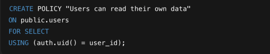 Why this fixes it: RLS applies rules directly in the database, so even if an API key is exposed, unauthorized queries will be filtered or blocked.