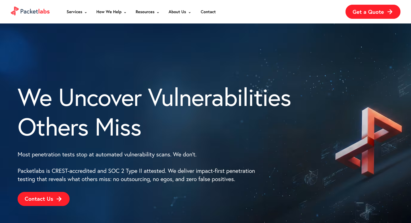 Headquarters: Toronto, Ontario, Canada, with a London, UK office. Founded: 2021. Company Size: Boutique team of senior offensive security researchers with an average of 15 plus years of industry experience, delivering globally. Primary Services: Web application and API penetration testing, internal and external network penetration testing, Active Directory security assessments, Wi-Fi security assessments, social engineering and phishing campaigns, physical security assessments, red teaming, purple teaming, cloud security assessments, and continuous penetration testing through the Stingrai PTaaS platform. Industries Served: SaaS, fintech, financial services, healthcare, AI and machine learning platforms, e-commerce, education, and high growth startups scaling to enterprise.