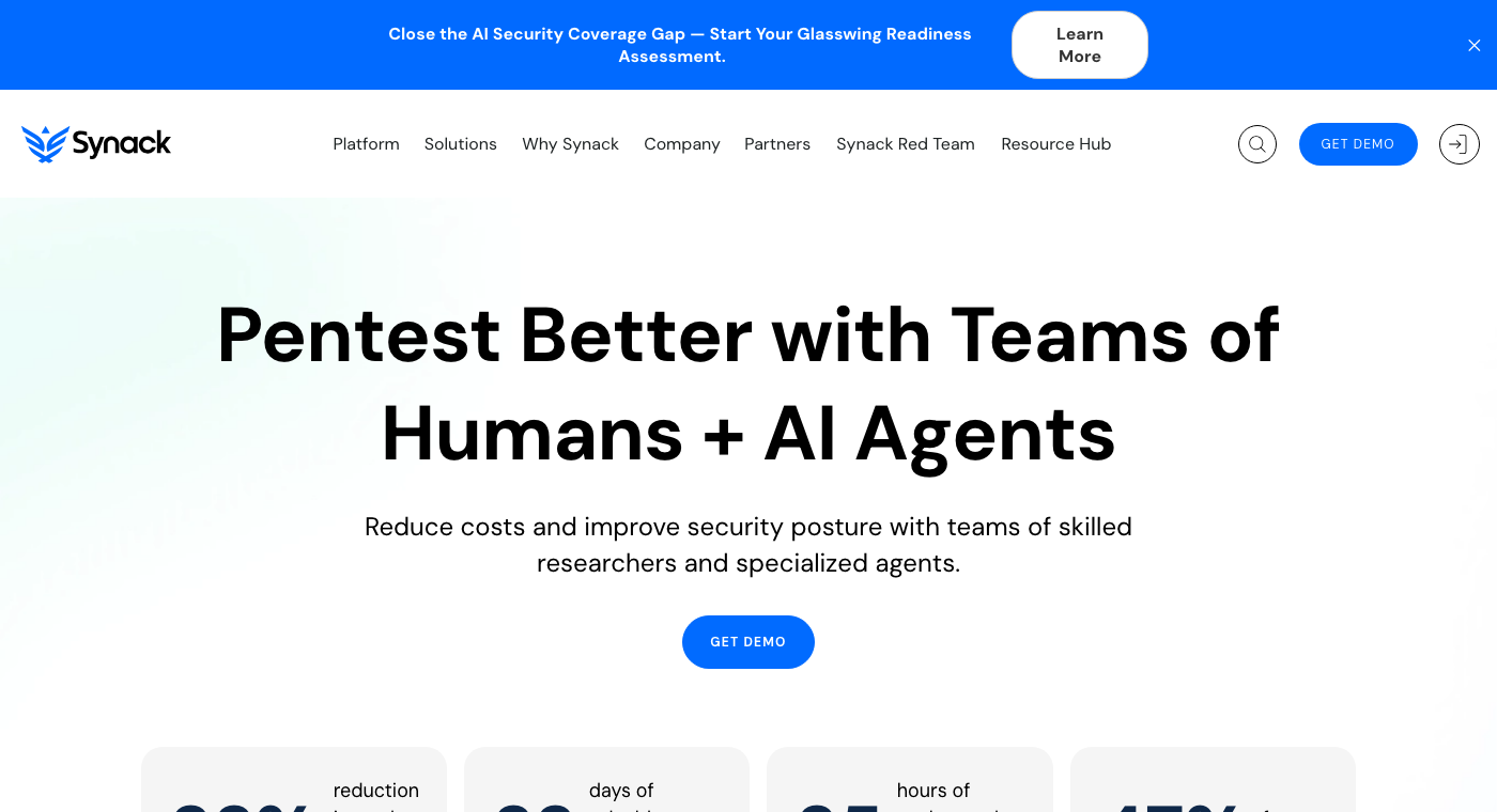Best for. Mid-market SaaS, fintech, healthcare, and AI first companies (Series A through enterprise) that want senior testers, a modern AI-powered PTaaS platform, a named AI agent delivering continuous coverage, and a partnership model instead of a one off compliance artifact. Especially strong for organizations on a SOC 2, ISO 27001, PCI DSS, or HIPAA track who want genuinely exploitable findings rather than checklist deliverables.