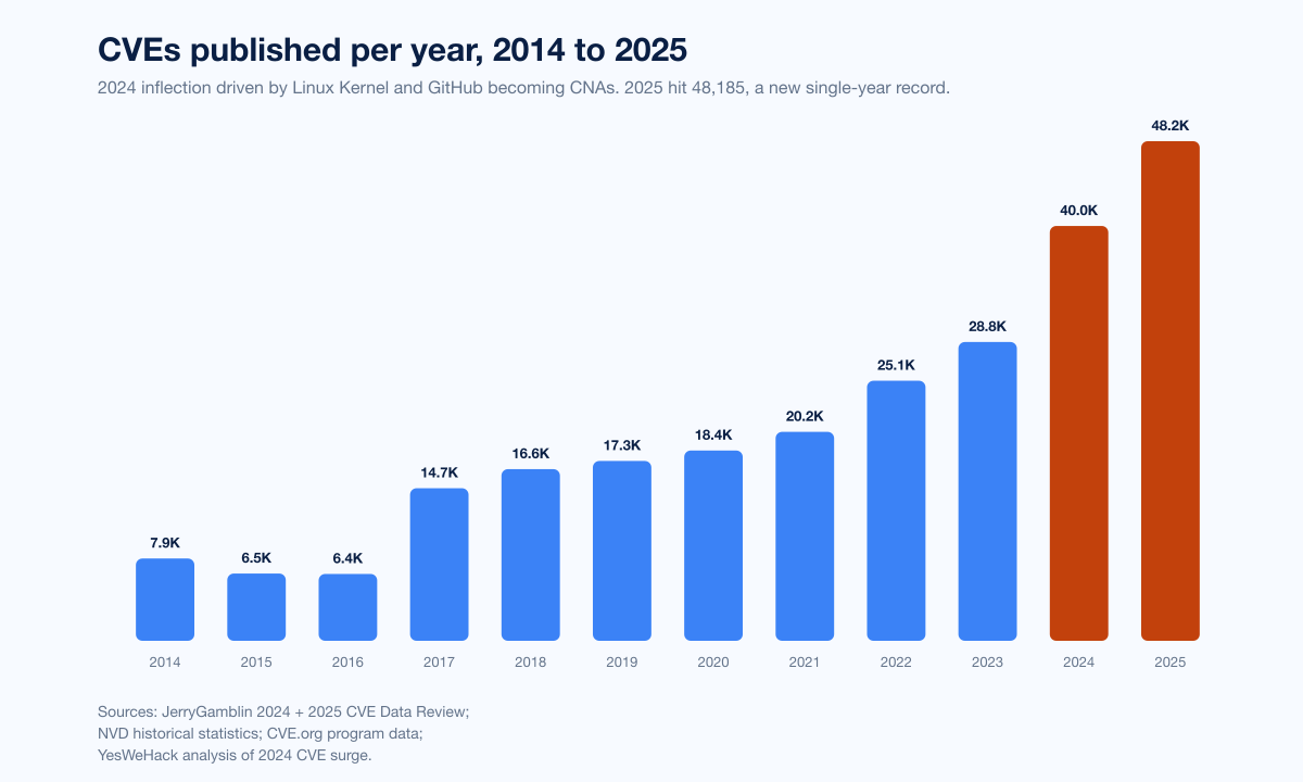 YesWeHack, "CVE Surge: Why the Record Rise": https://www.yeswehack.com/news/cve-surge-record-jump-vulnerabilities